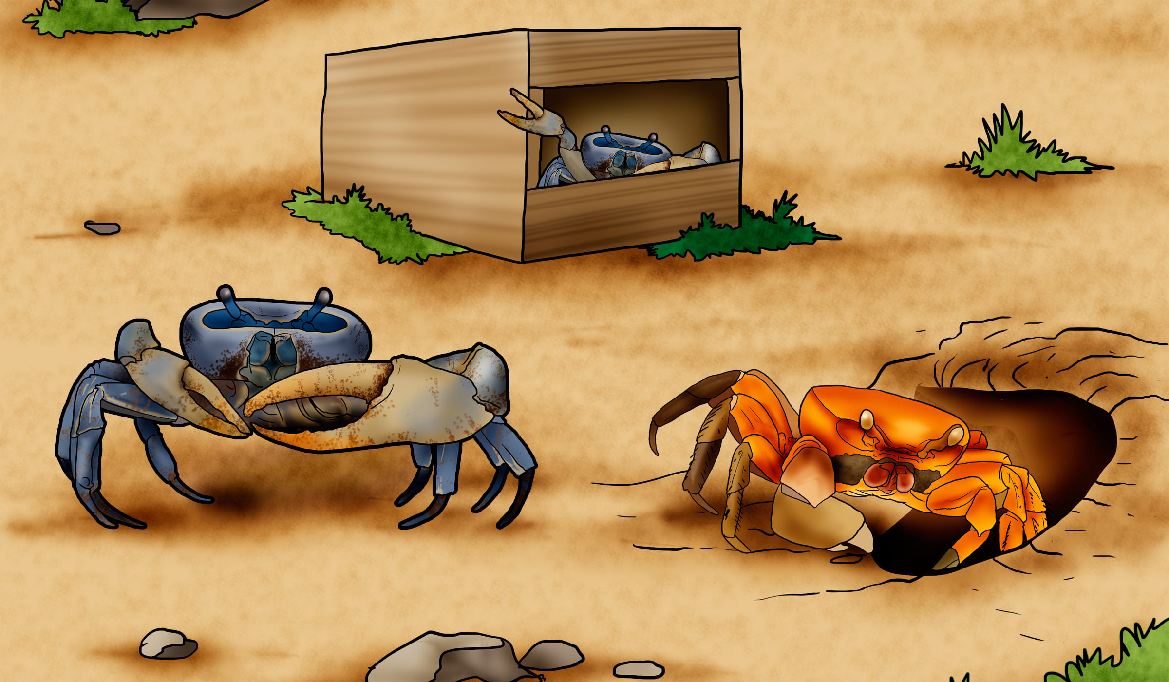 Gradually, however, faced with the slowness of the delivery and the insufficiency of rations for all the settlers established on the island, they must resolve to take an interest in tropical plantations and food crops. They thus get closer to the Caribbean to learn about their agricultural techniques and their eating habits. Despite this, the crab and its exotic taste do not appeal to settlers who prefer fish or other crustaceans such as lobster.