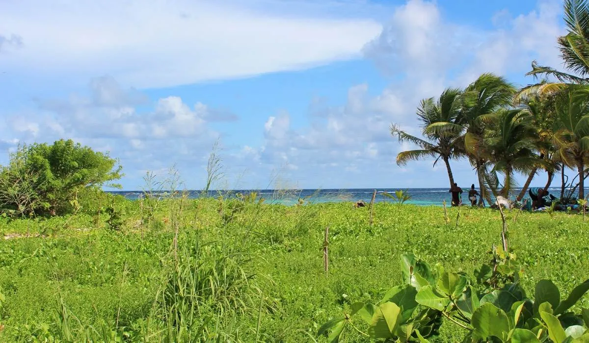Creepers known as railroad vine (Ipomoea pes-caprae) litter the seashore, protecting the ecosystem and providing a home for various species of crab and hermit crab, a protected species on the island. Further out, the abundant vegetation plays an essential role in protecting the flora and fauna, as well as counteracting the erosion that affects many of the island's beaches.