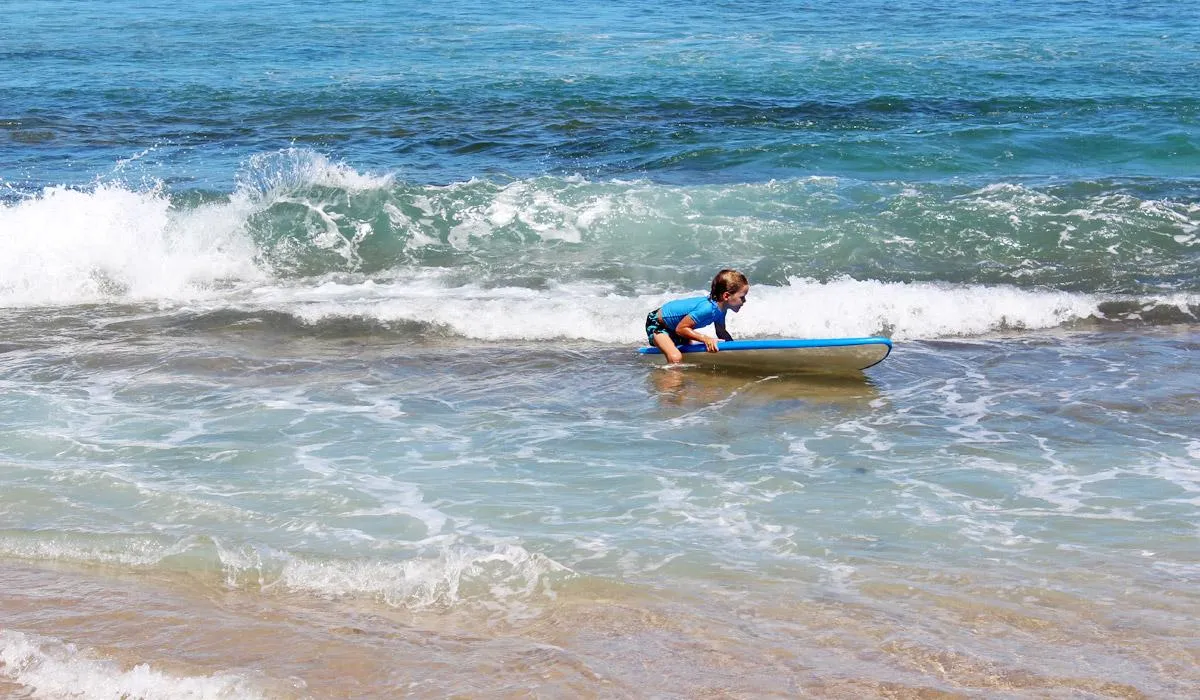 Most of the time, the current is weak and the waves safe for children.
