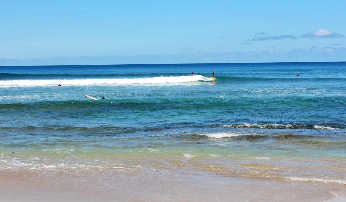 Stretching for over a kilometer, this coral sand beach is often battered by waves, making it a popular spot for bodyboarders and surfers.