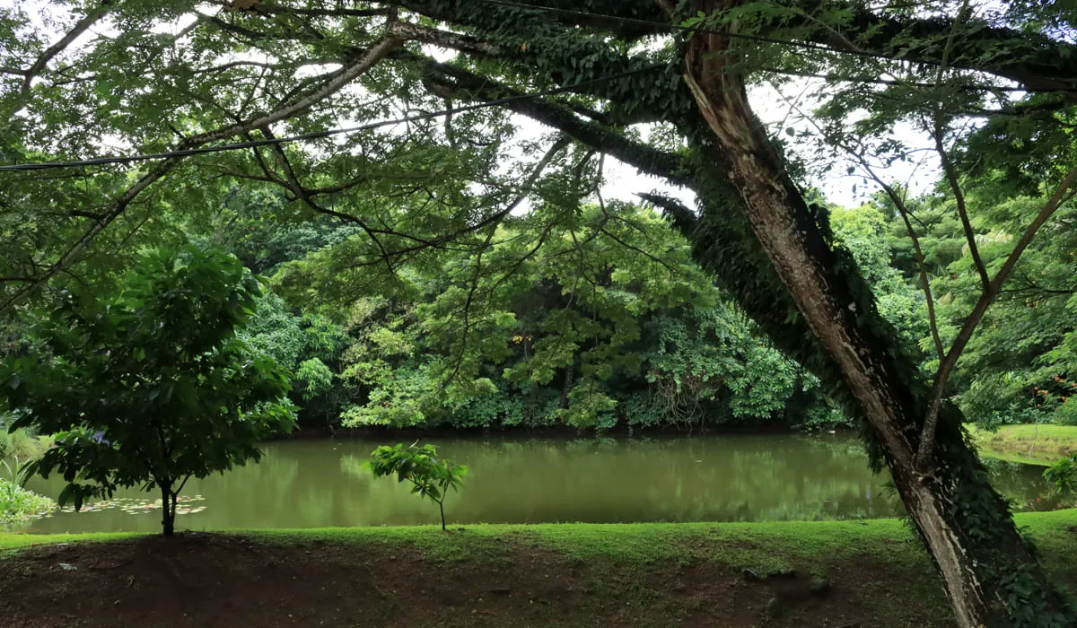 The site is still fed by diversion canals of Rivière Poquet (river) water provide a stunning pool in the heart of a tropical garden. Outbuildings, boxes of workers and the gardens are located north of the house.