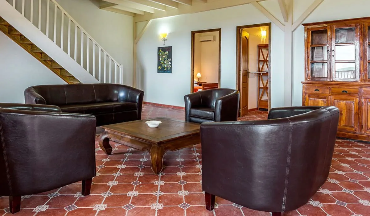 - The panorama villas are all located in front of the sea, in front of the panorama of the sugar cane fields and banana plantations. They are four independent villas with private access and free parking spaces on the ground floor. These 5/6 air-conditioned rooms offer a living area of 220 square meters each, and can accommodate up to 8 people. There are four double bedrooms, three bathrooms and four toilets, a 50 square meters terrace with a dining area, a 65 square meters living room opening onto a fully equipped American kitchen (hotplates, oven, microwave, family fridge, washing machine and dishwasher), a relaxation area with sofas, and an office area.